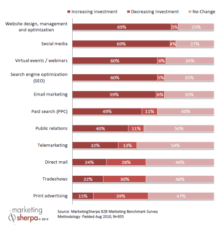 B2B Marketing 2011: Eine brandaktuelle Umfrage beschäftigt sich mit den voraussichtlichen Veränderungen der B2B Marketing Budgets in den USA. Dafür wurden im August 2010 insgesamt 935 B2B Marketing Manager befragt, wie sich bei ihnen im Unternehmen die Marketinginvestitionen verändern werden.